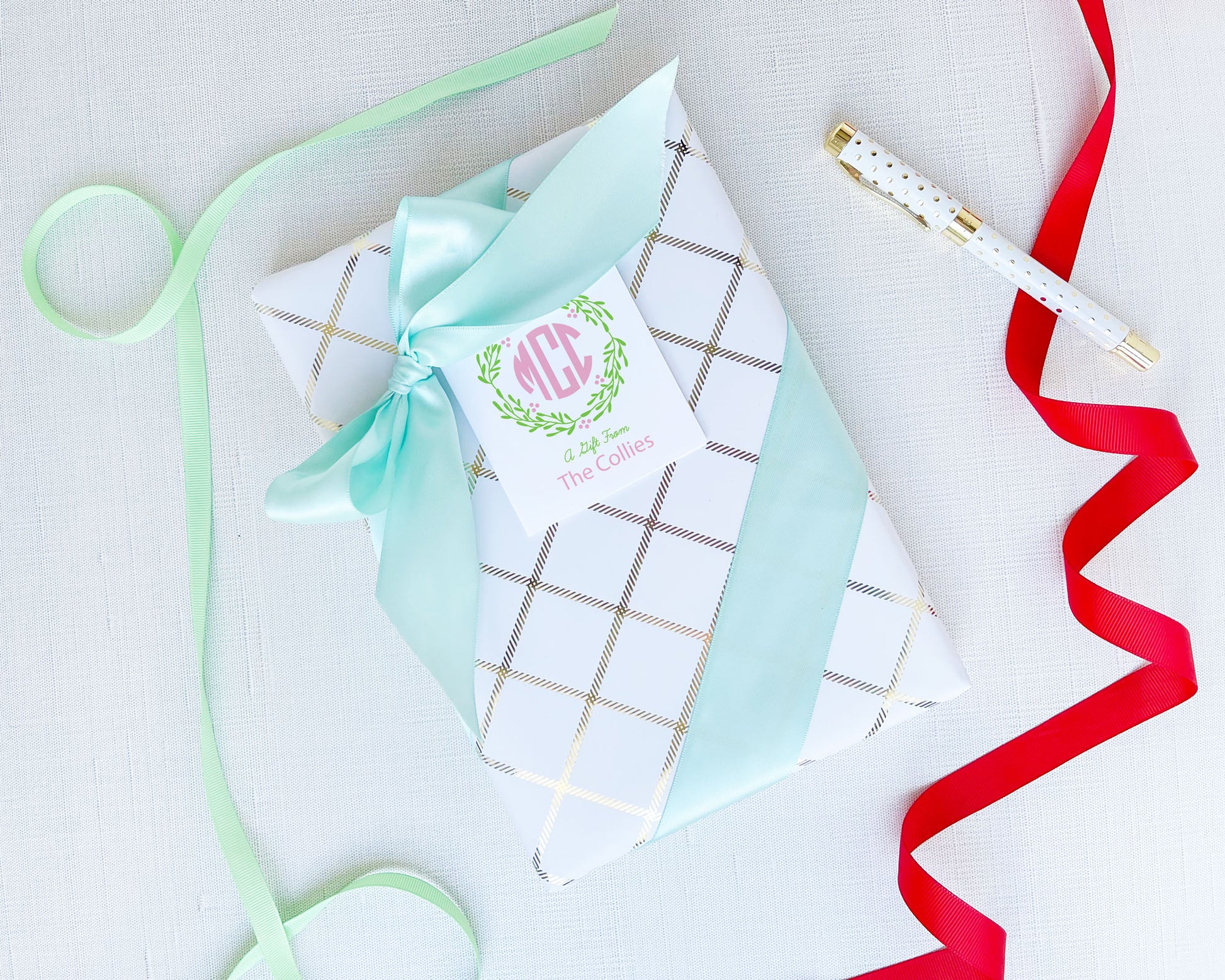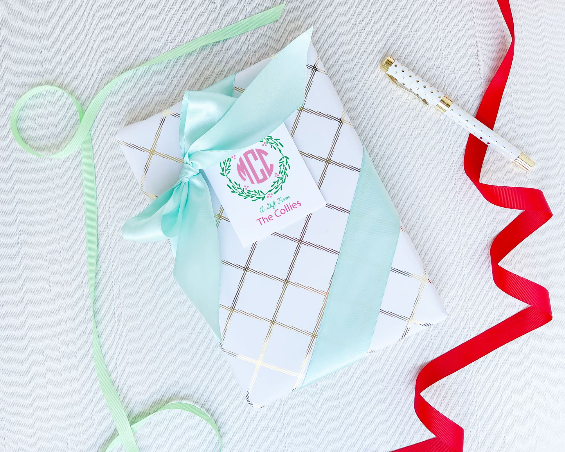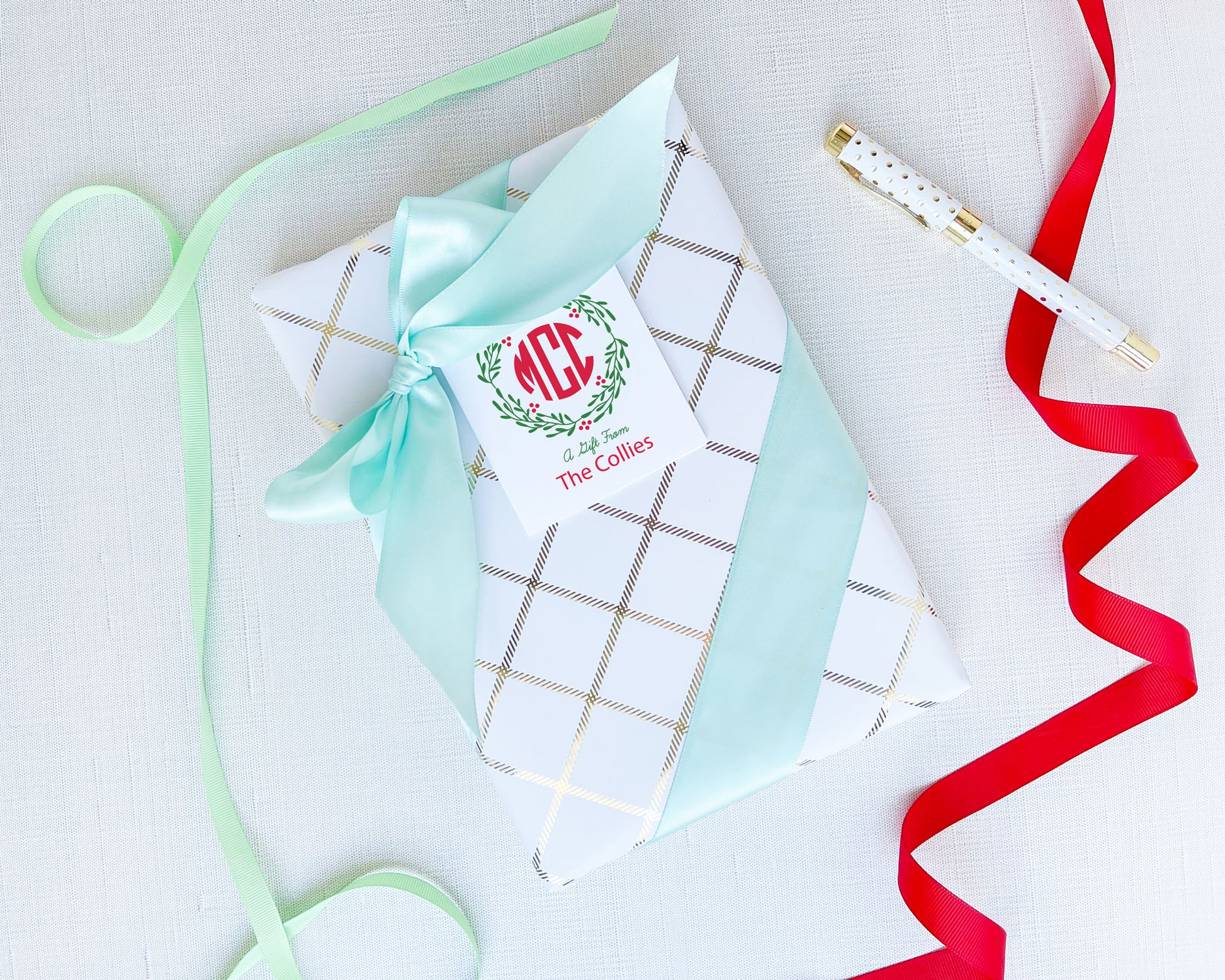 Circle Christmas Wreath Holiday Monogram Gift Sticker