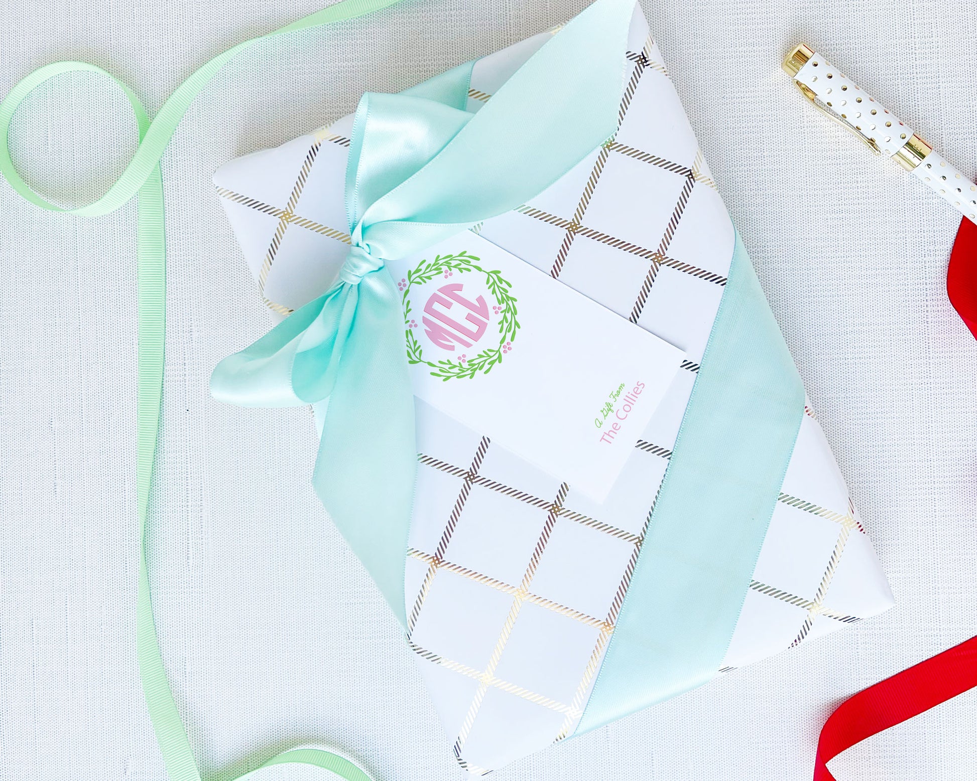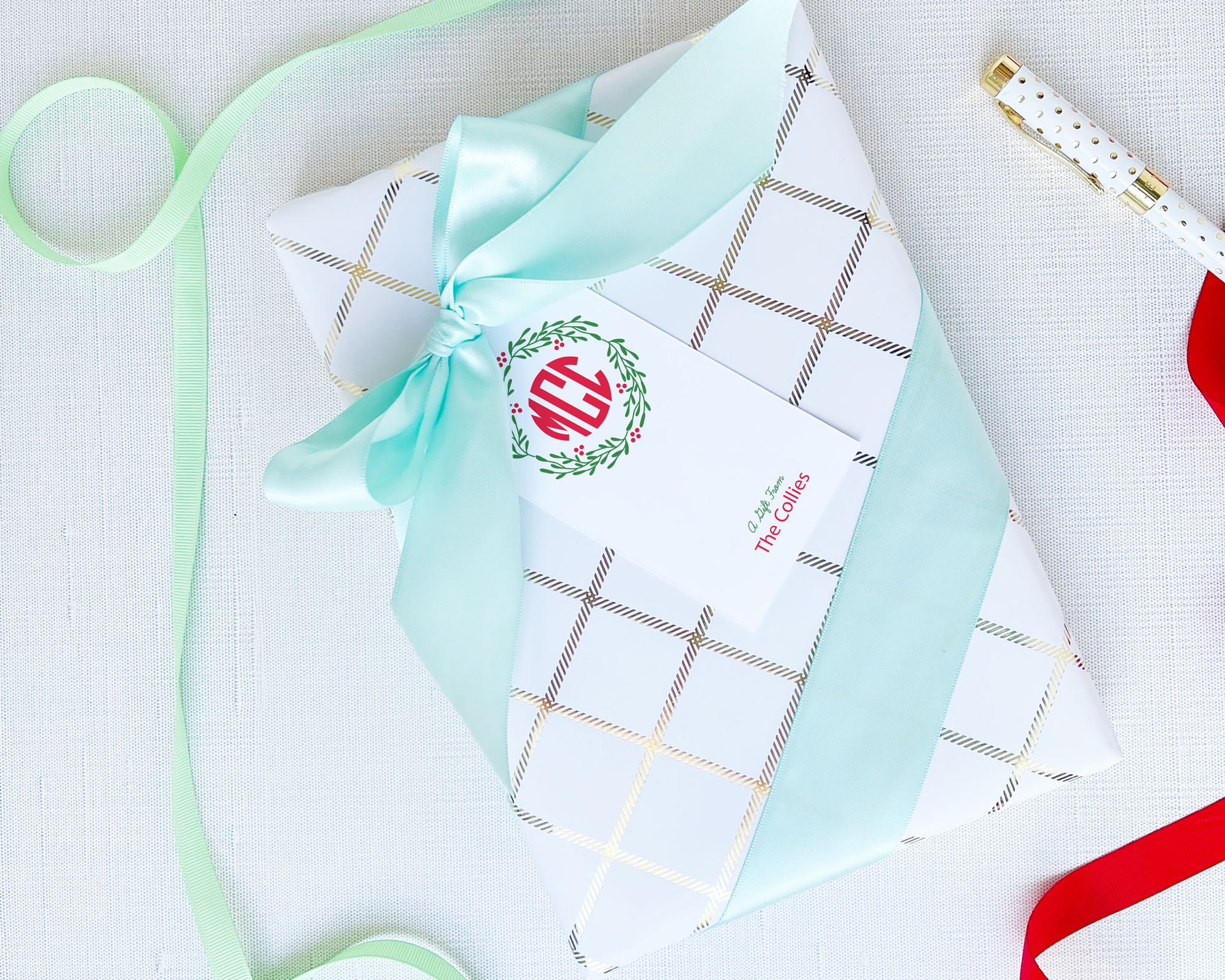 Circle Christmas Wreath Holiday Monogram Gift Tags
