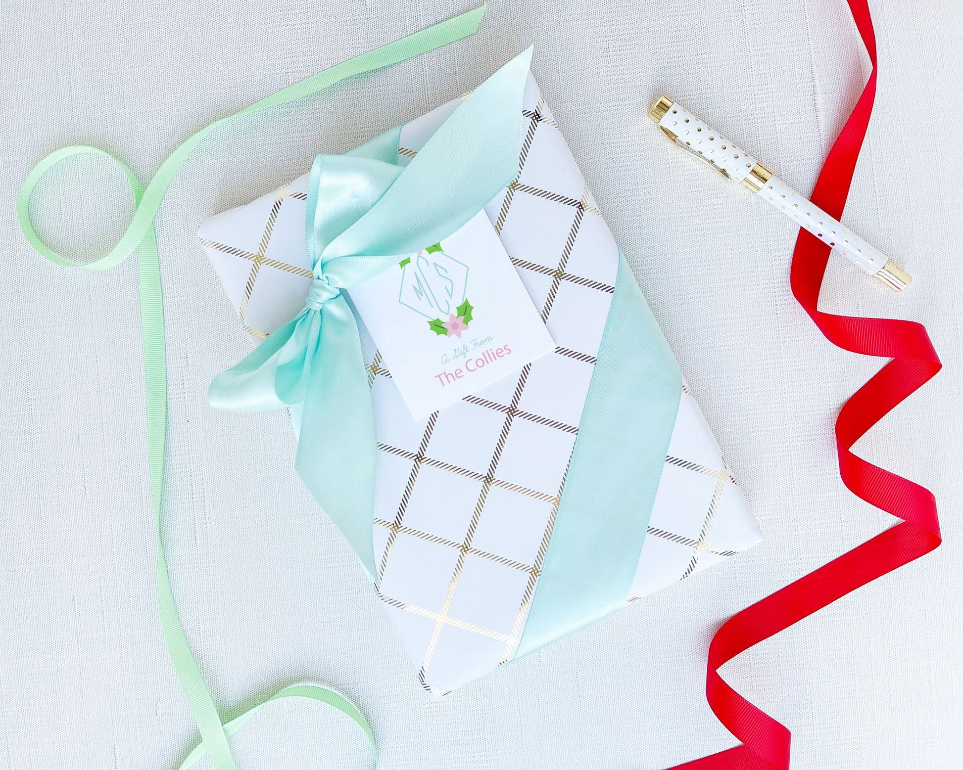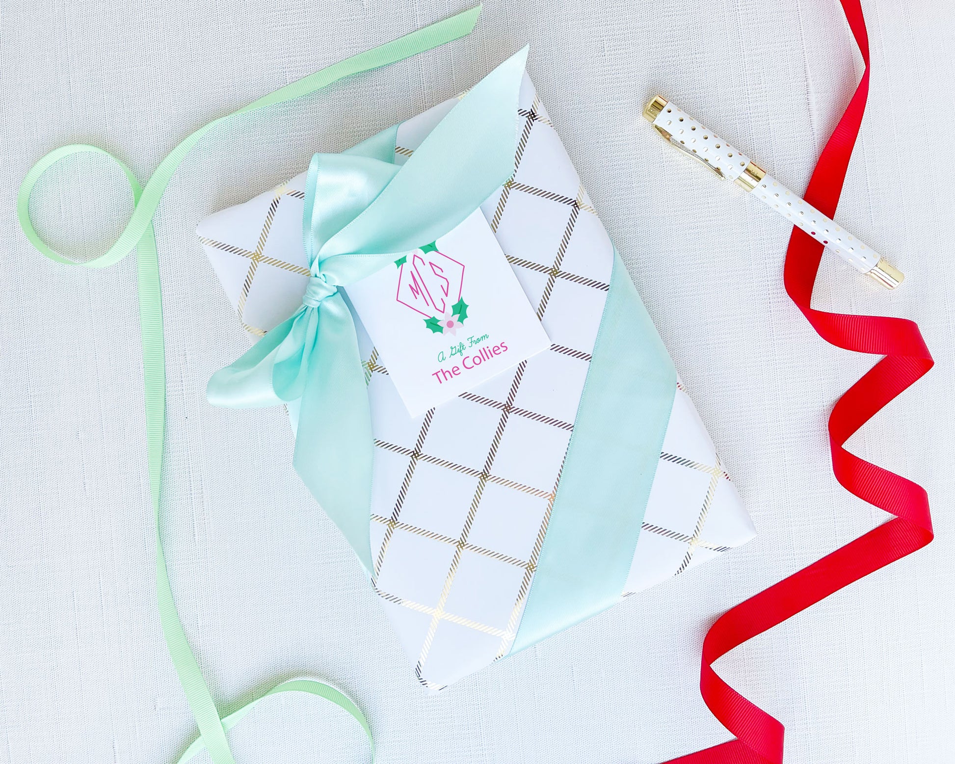 Diamond Christmas Poinsettia Holiday Monogram Gift Sticker