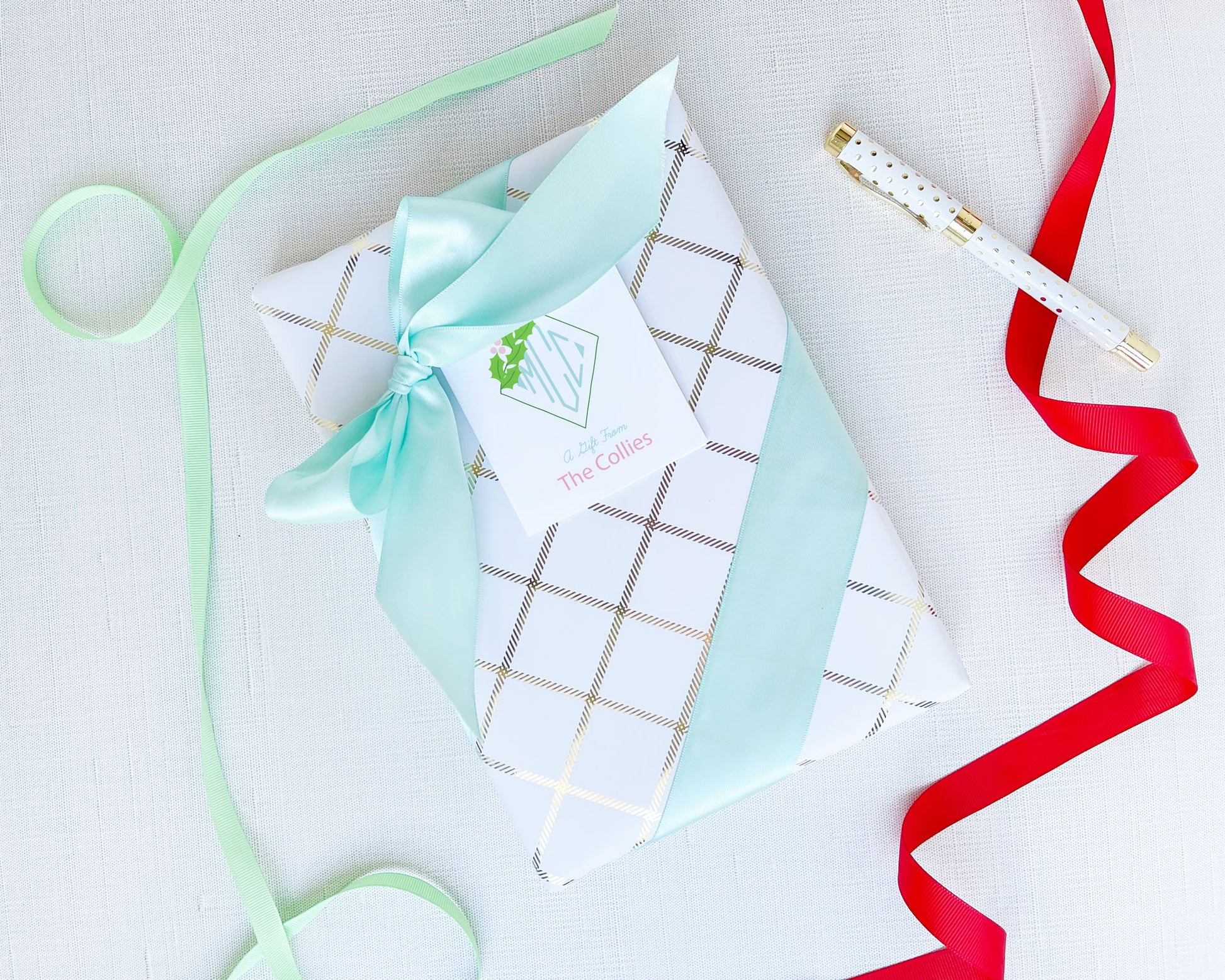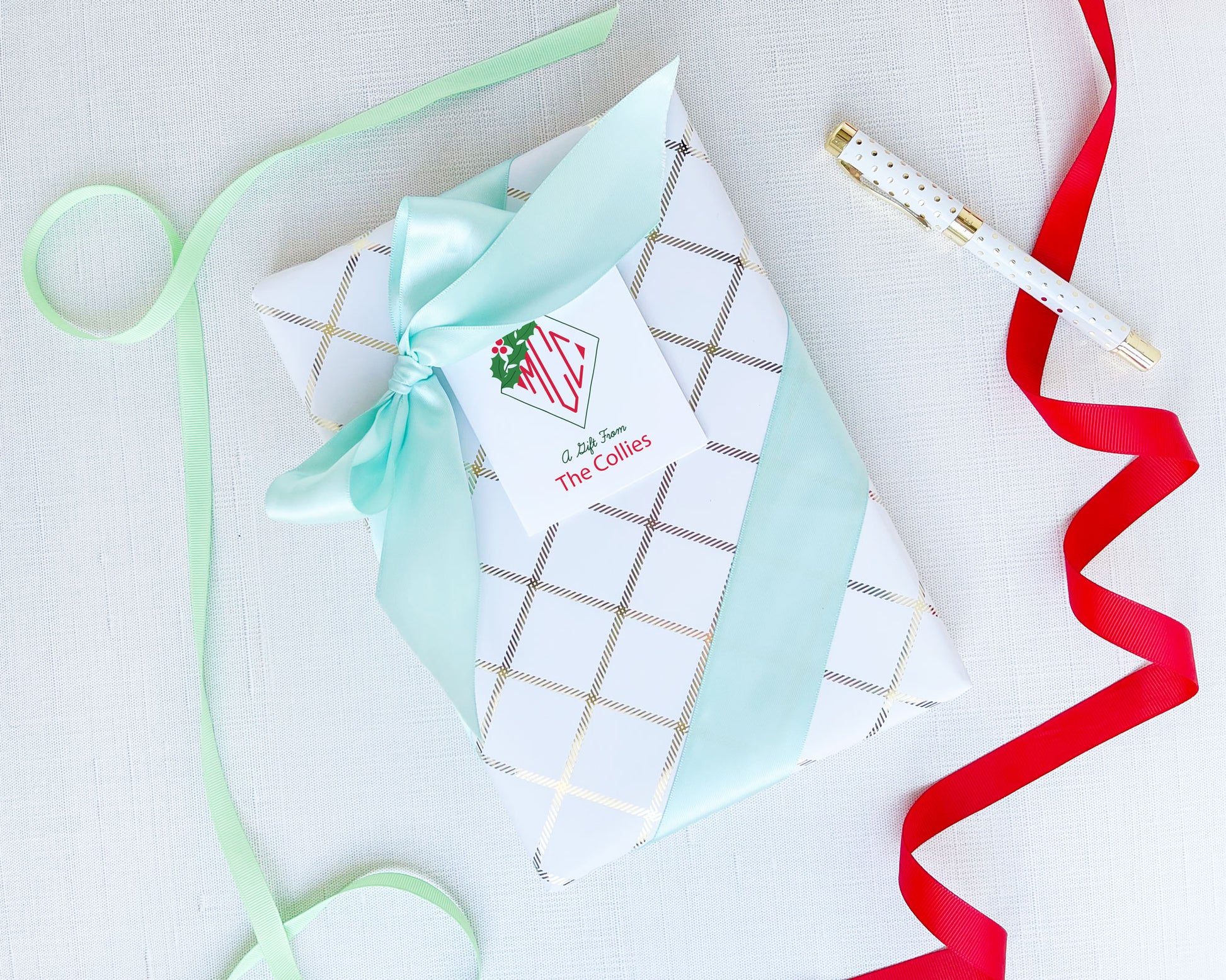 Diamond Holly Branch Holiday Monogram Gift Stickers