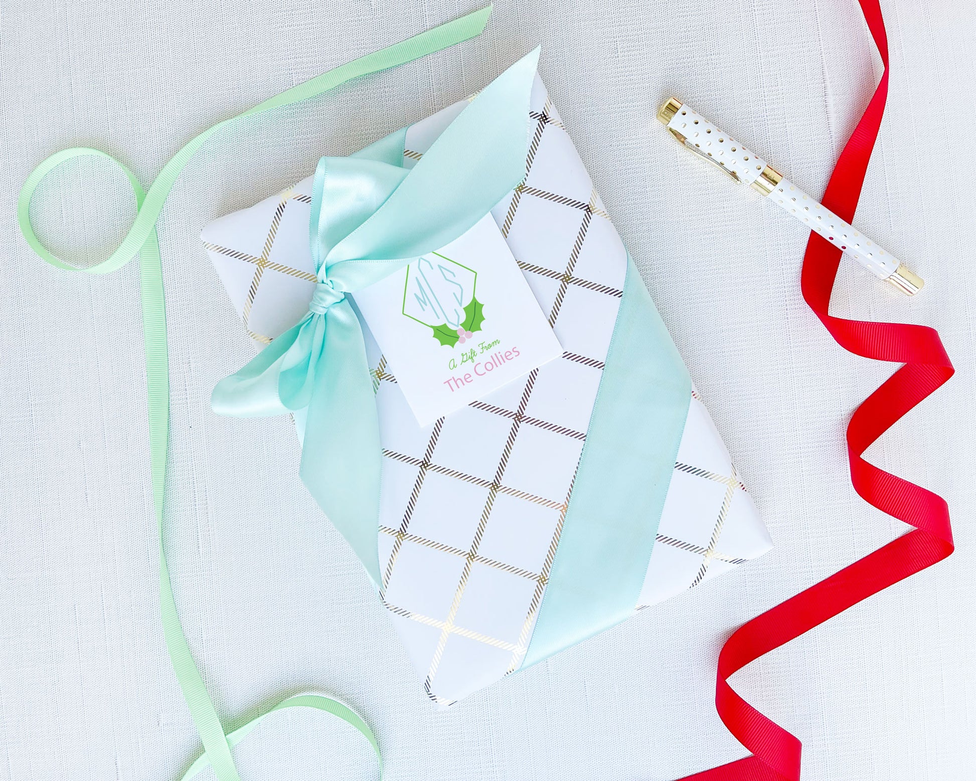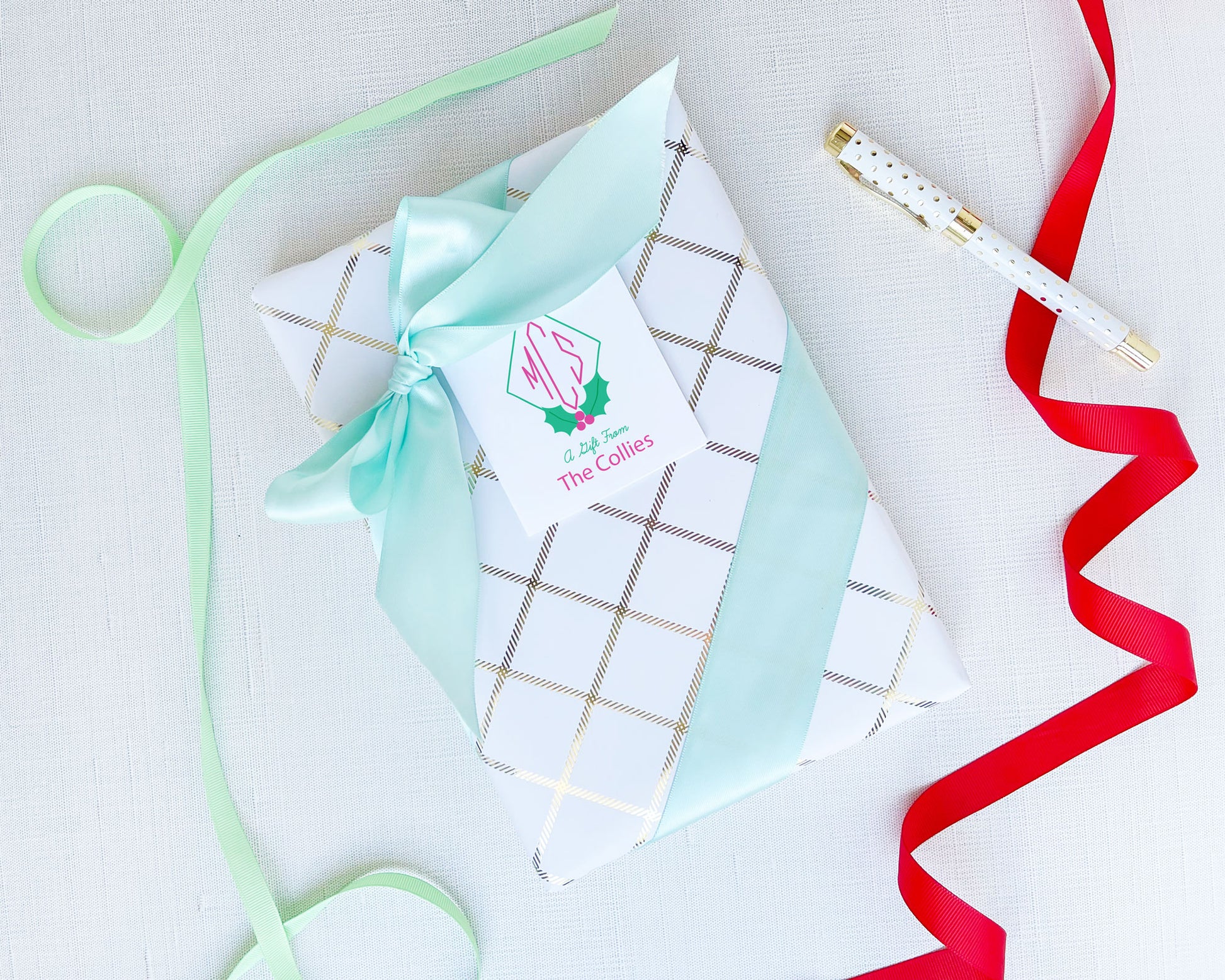 Diamond Holly Leaves Holiday Monogram Gift Stickers