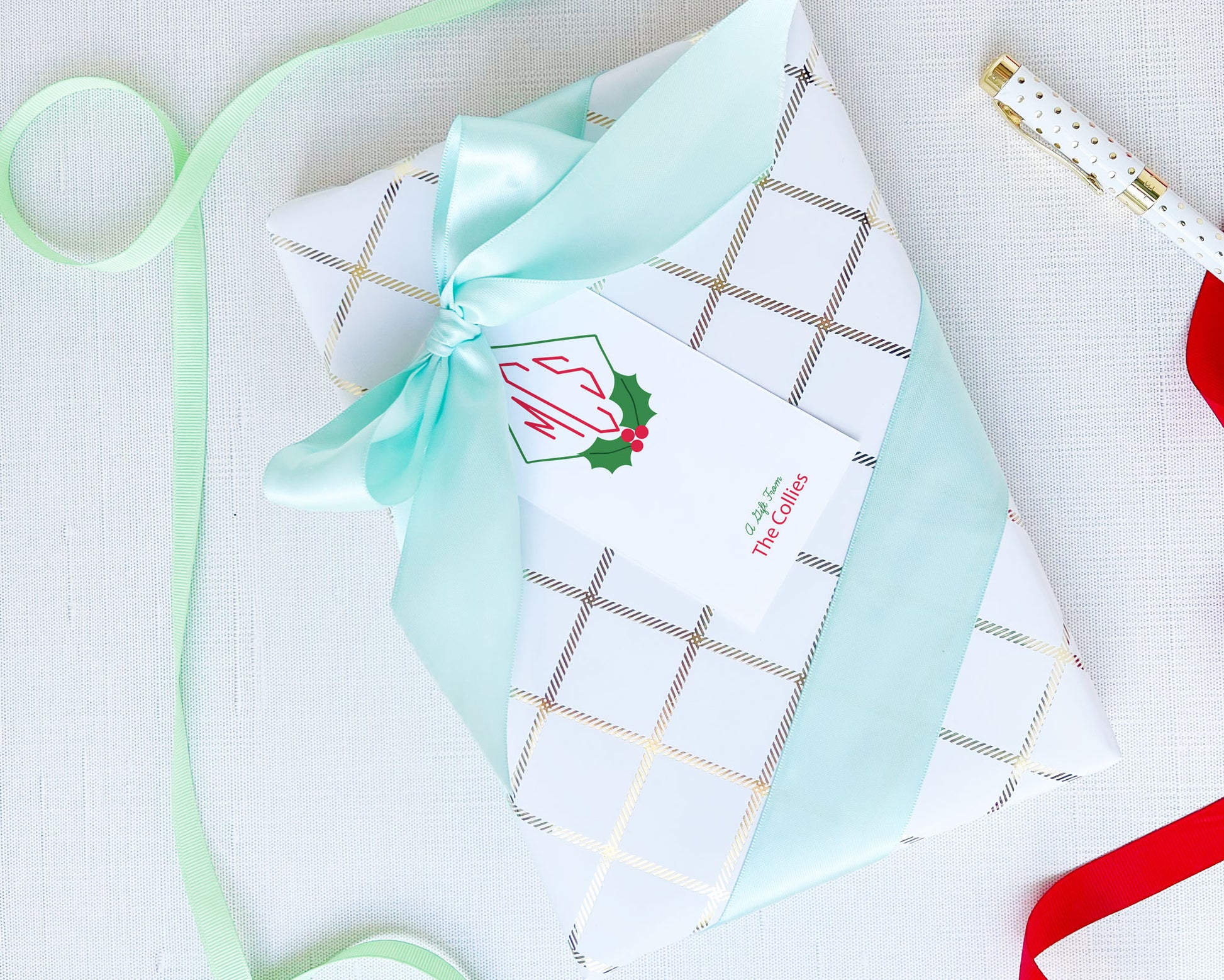 Diamond Holly Leaves Holiday Monogram Gift Tags