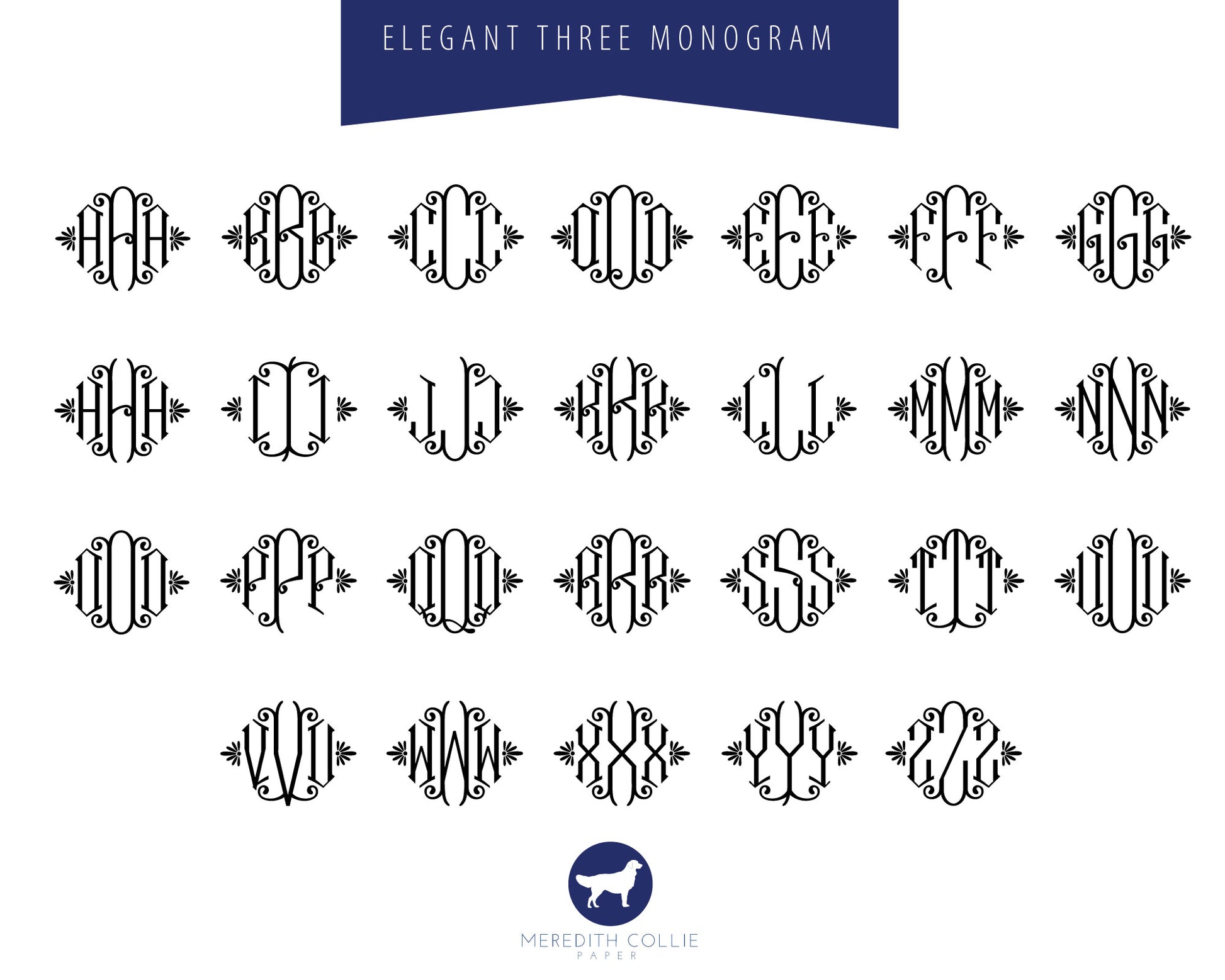Elegant Three Initial Monogram Return Address Stamp