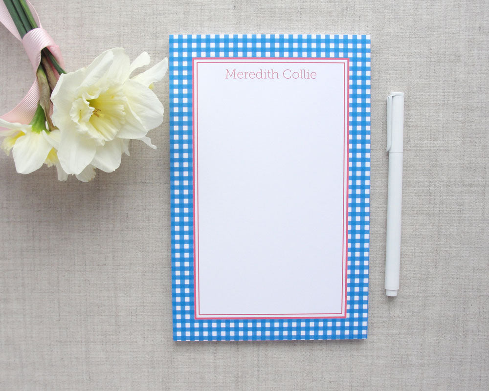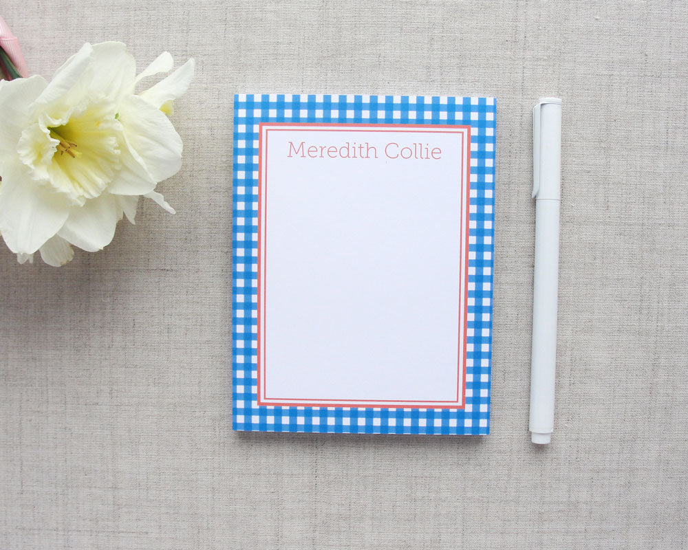 This gingham pattern is fun and preppy. This notepad is perfect for writing a quick note or gifting to a friend or colleague. Choose from 3 font styles and your favorite colors to add your own personality to your notepad.