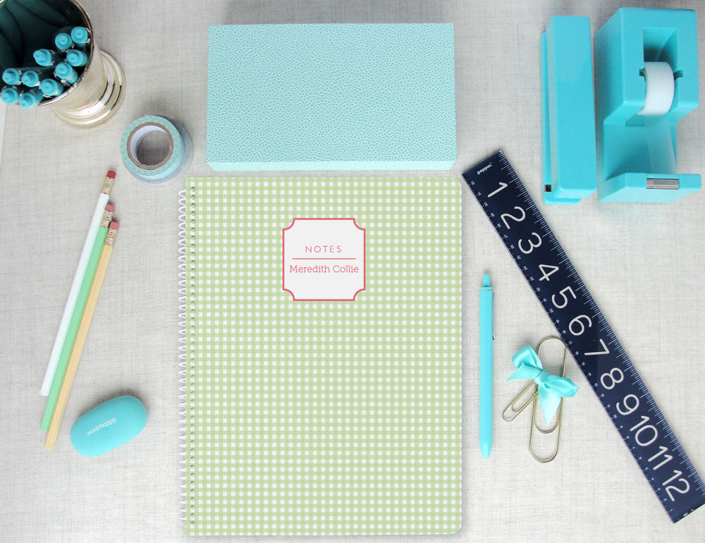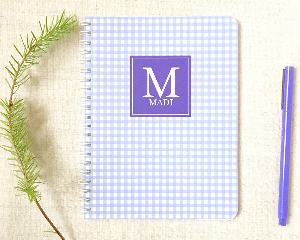 The gingham check personalized mini spiral notebook is perfect for project management and note taking while on the go. This size perfectly fits into any purse or briefcase. Choose from multiple color options and personalization choices to create your own unique spiral notebook. Available in three sizes: