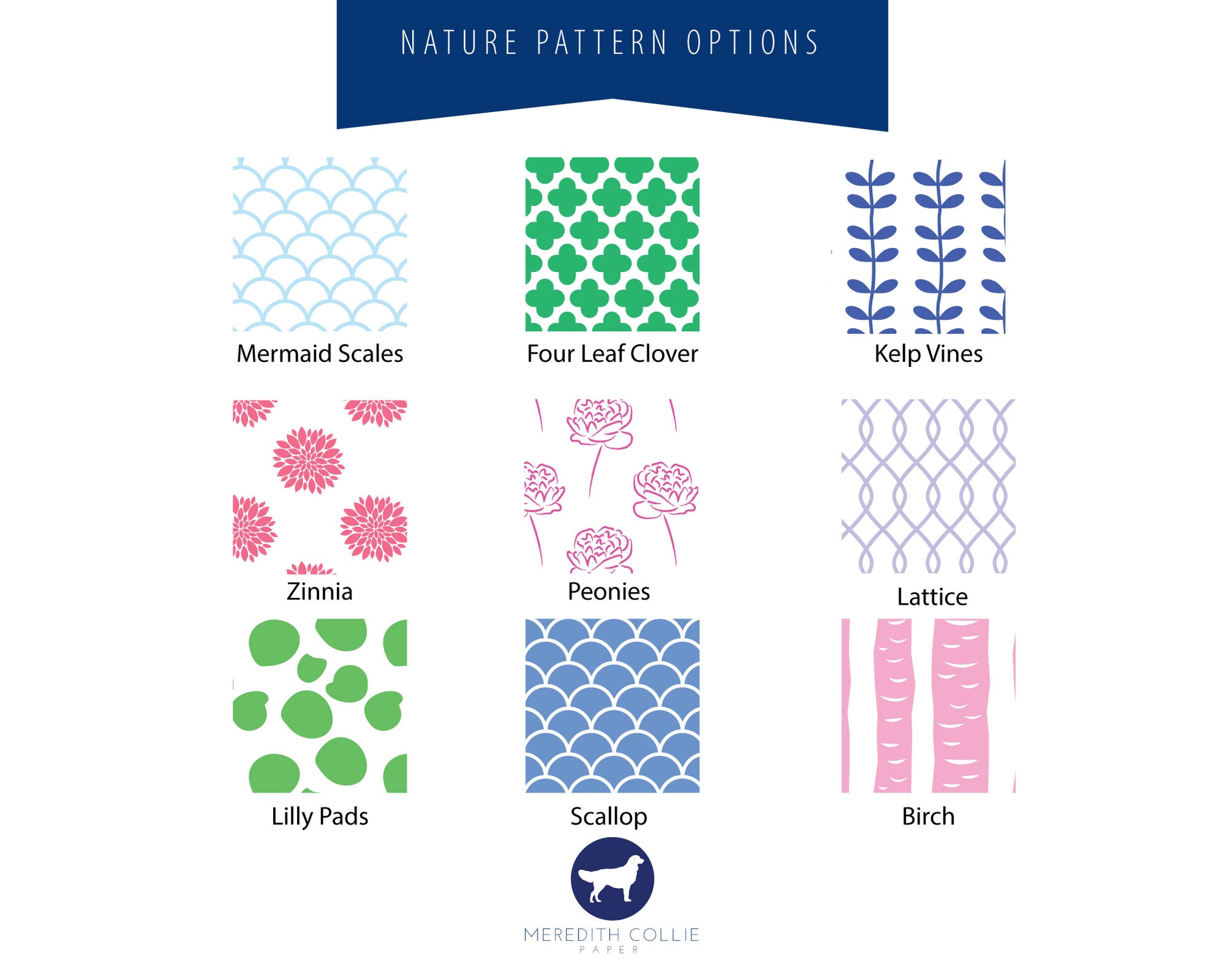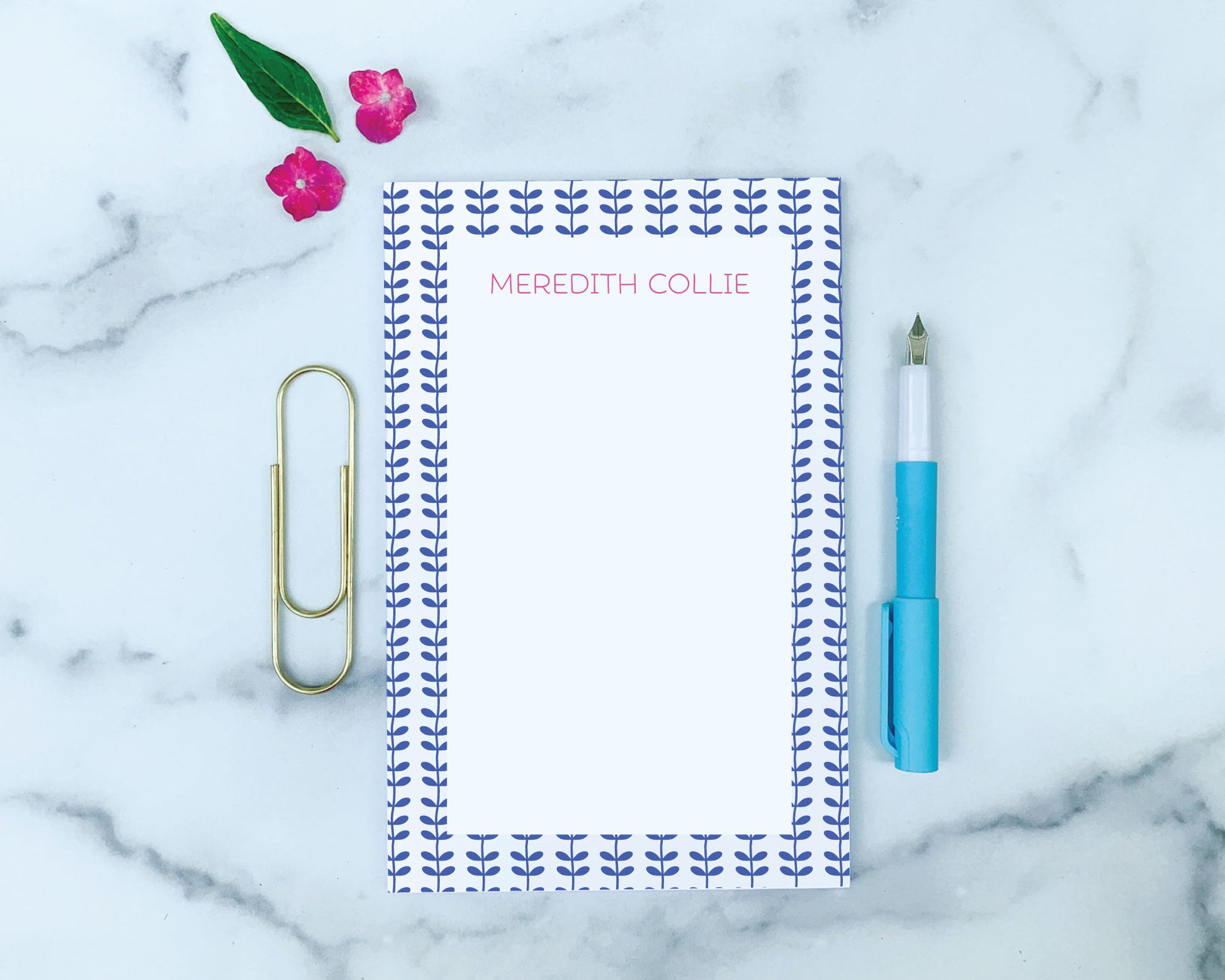 Inspired by elements found in nature, this personalized notepad is perfect for the someone who loves to be out in Mother Nature. Choose from one of nine pattern options featuring graphic elements found on both land and sea. Customize the pattern color and pair with your favorite font in a complementary color.
