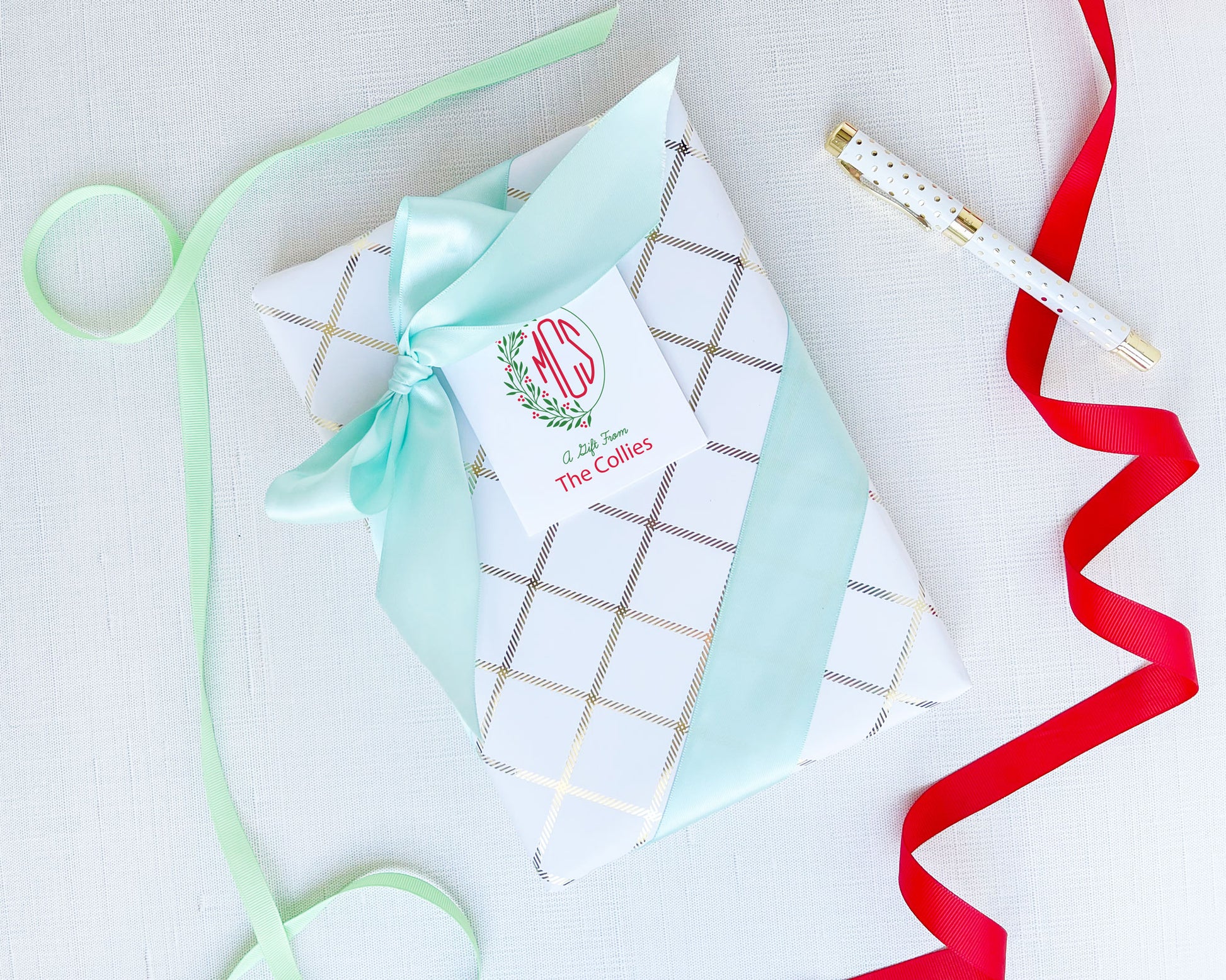 Oval Christmas Leaf Holiday Monogram Gift Sticker
