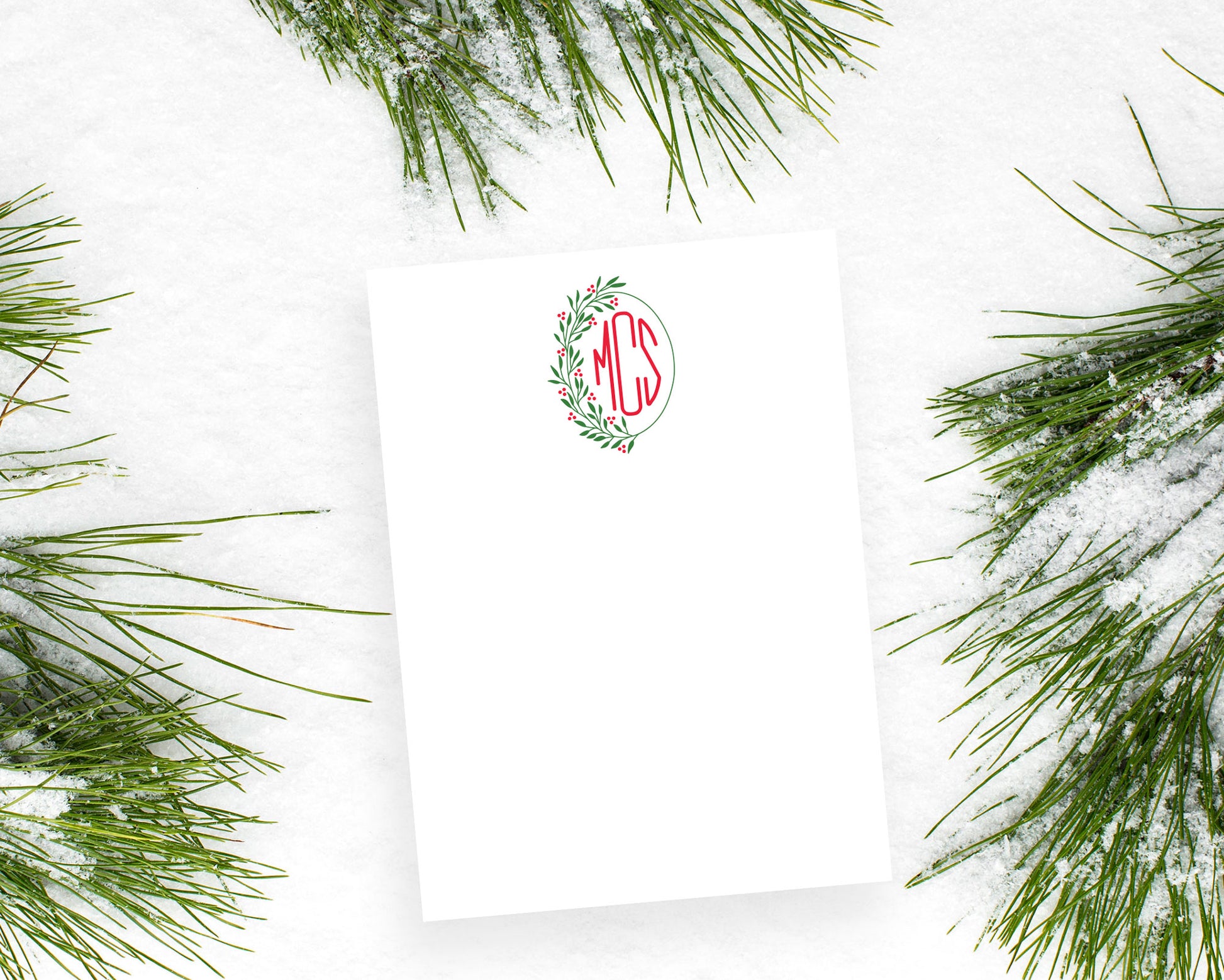 Oval Christmas Leaf Holiday Monogram Flat Stationery