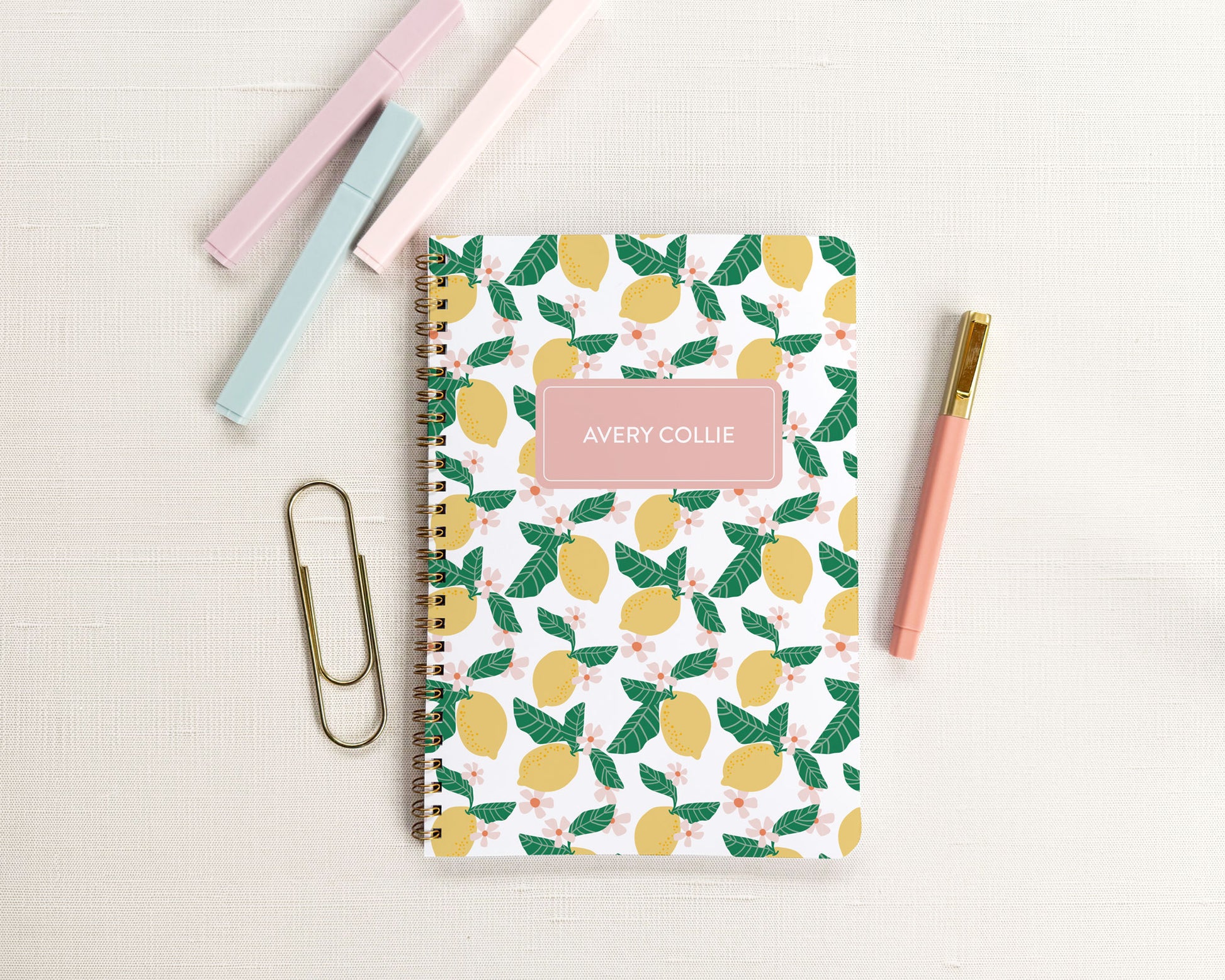 Stay organized and motivated with this Personalized Lemon Spiral Bound Homework Planner. Featuring a cheerful illustrated lemon floral pattern, this planner offers simple homework and project planning pages designed specifically for middle and high school students. Its spiral binding ensures easy page turning and durability, making it the perfect companion to keep track of assignments and deadlines with style and ease.