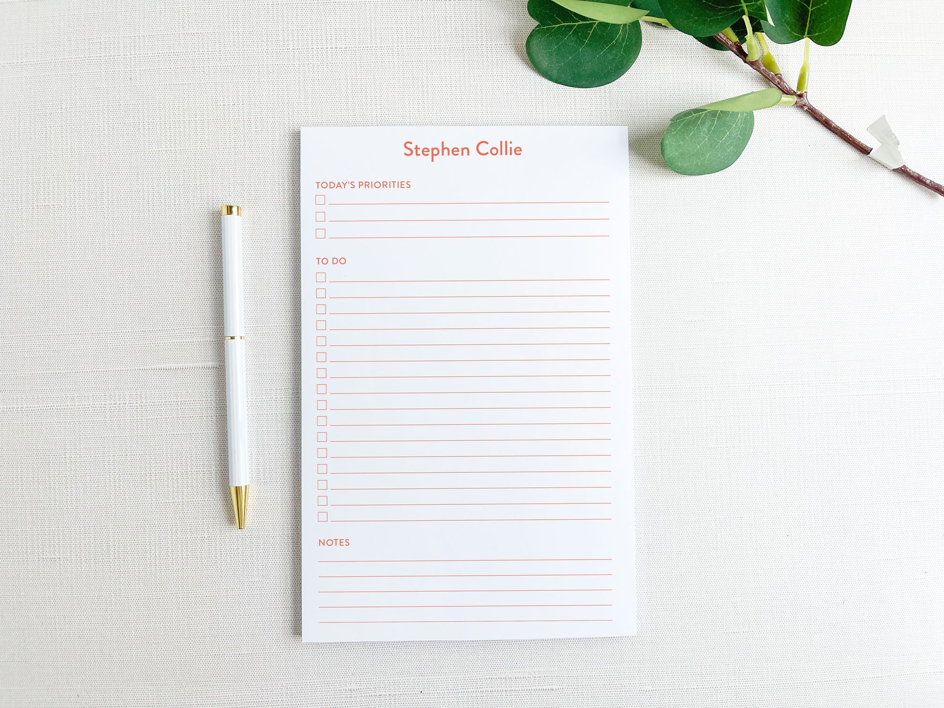 Stay organized and focused with this Personalized Priority To Do List Daily Notepad. Designed for adults, it features a simple, professional layout that highlights your top three priorities, a dedicated to-do list and a notes section.