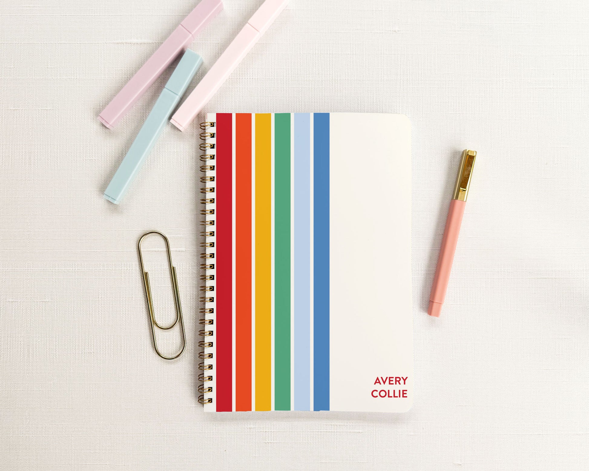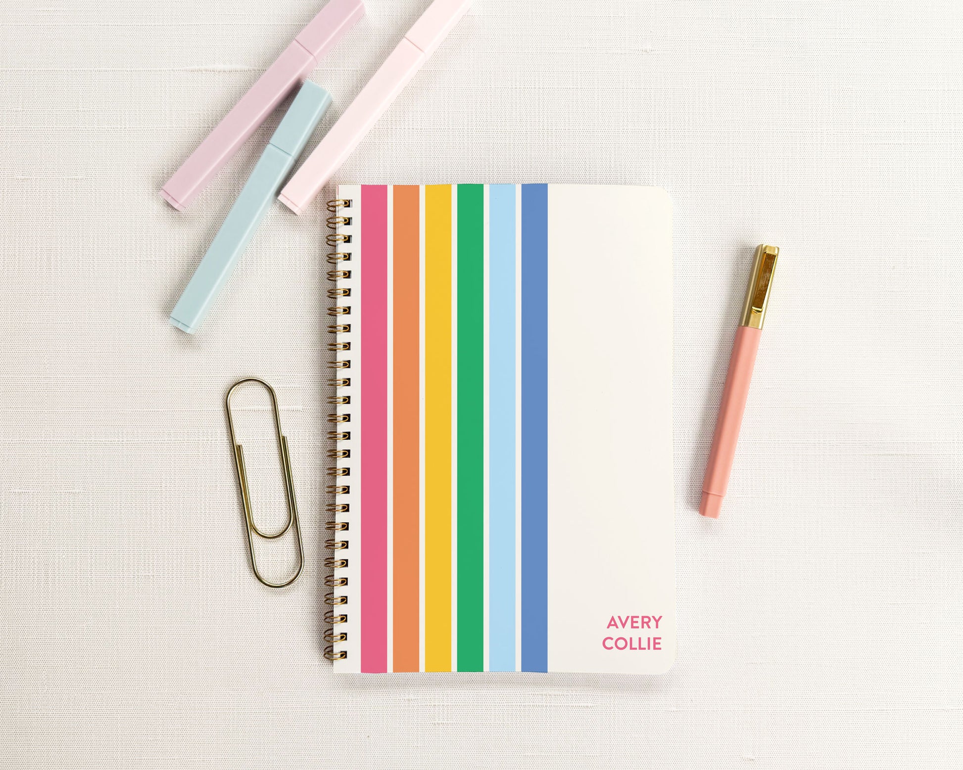 Personalized Rainbow Stripe Spiral Bound Homework Planner