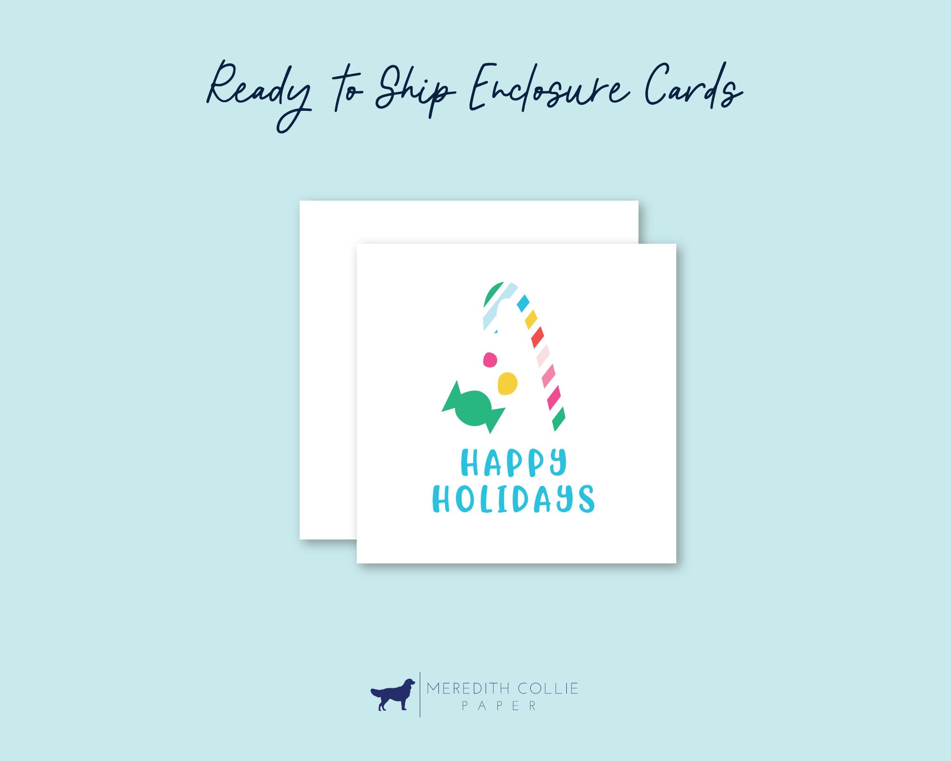 Ready to ship: this set of 9 preppy holiday square enclosure cards are the perfect addition to your holiday presents. Inside of the cards are blank. Featuring three designs, each set includes 3 of each design.
