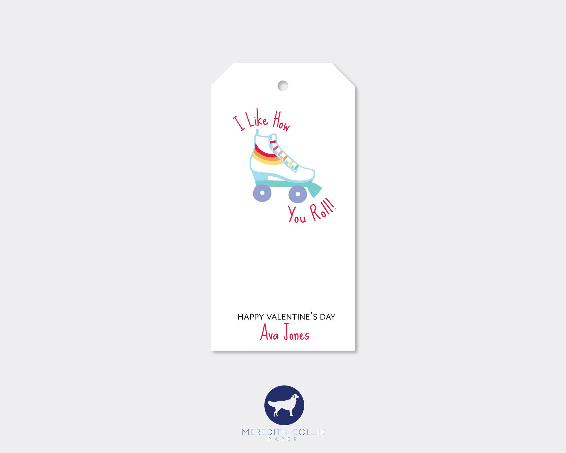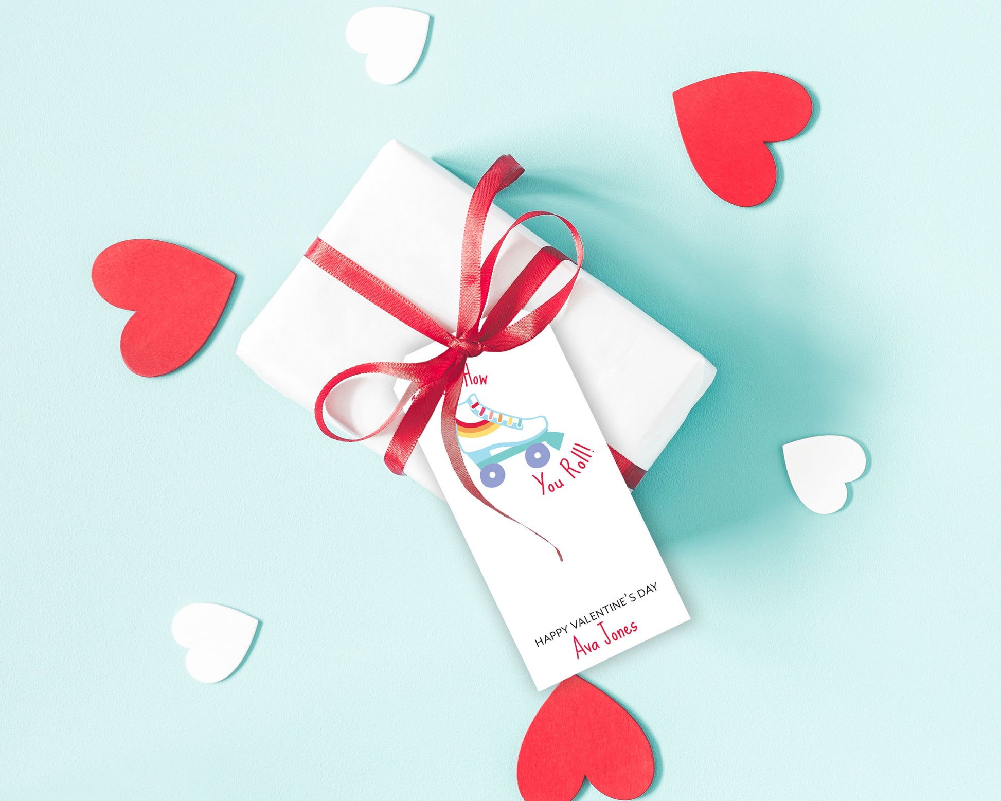 Rainbow Roller Skate Personalized Valentine's Day Gift Tags