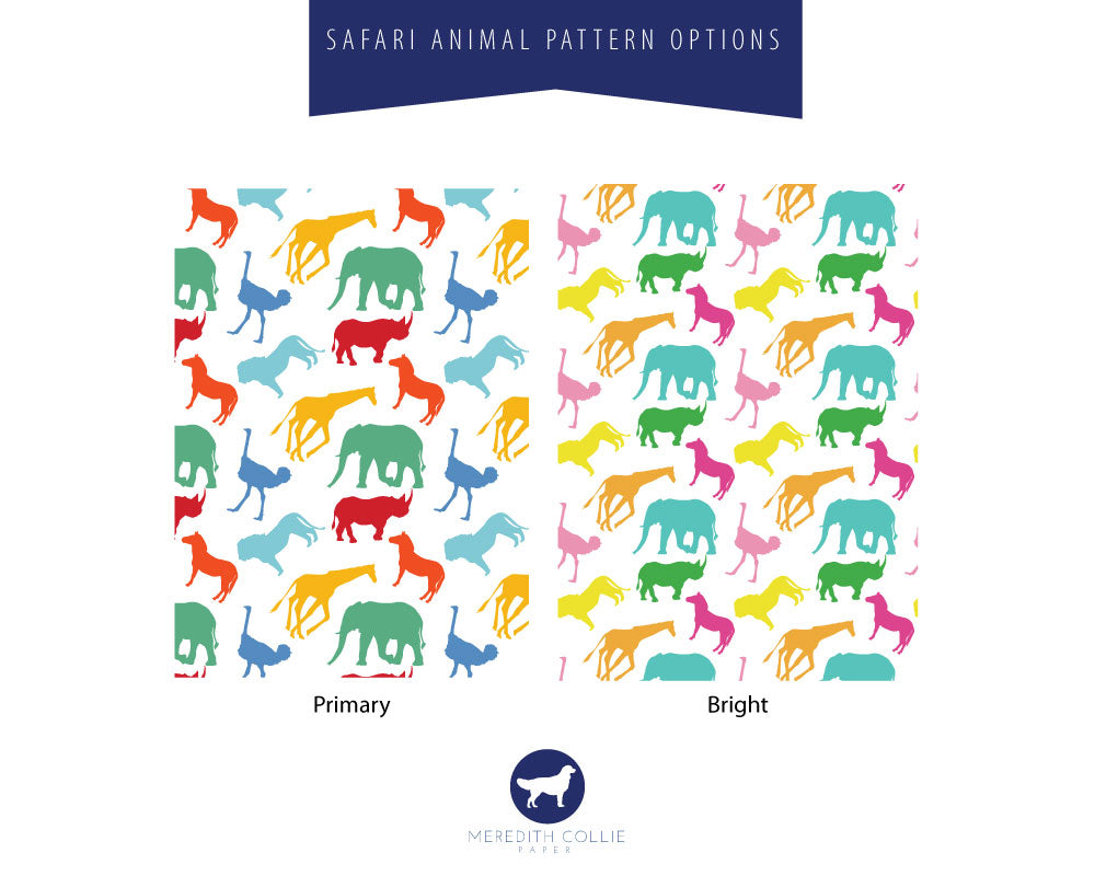 This personalized safari animal spiral bound notebook is a perfect gift for kids. Available in two sizes: regular and mini, these notebooks are perfect for note taking and journaling. The safari animal pattern features six different animal silhouettes (elephant, zebra, lion, rhinoceros, ostrich and giraffe). Personalize the notebook with either a full name printed on a rectangle or choose from one of the monogram options. This design is available in two color schemes: primary which is perfect for boys and bright which is perfect for girls.