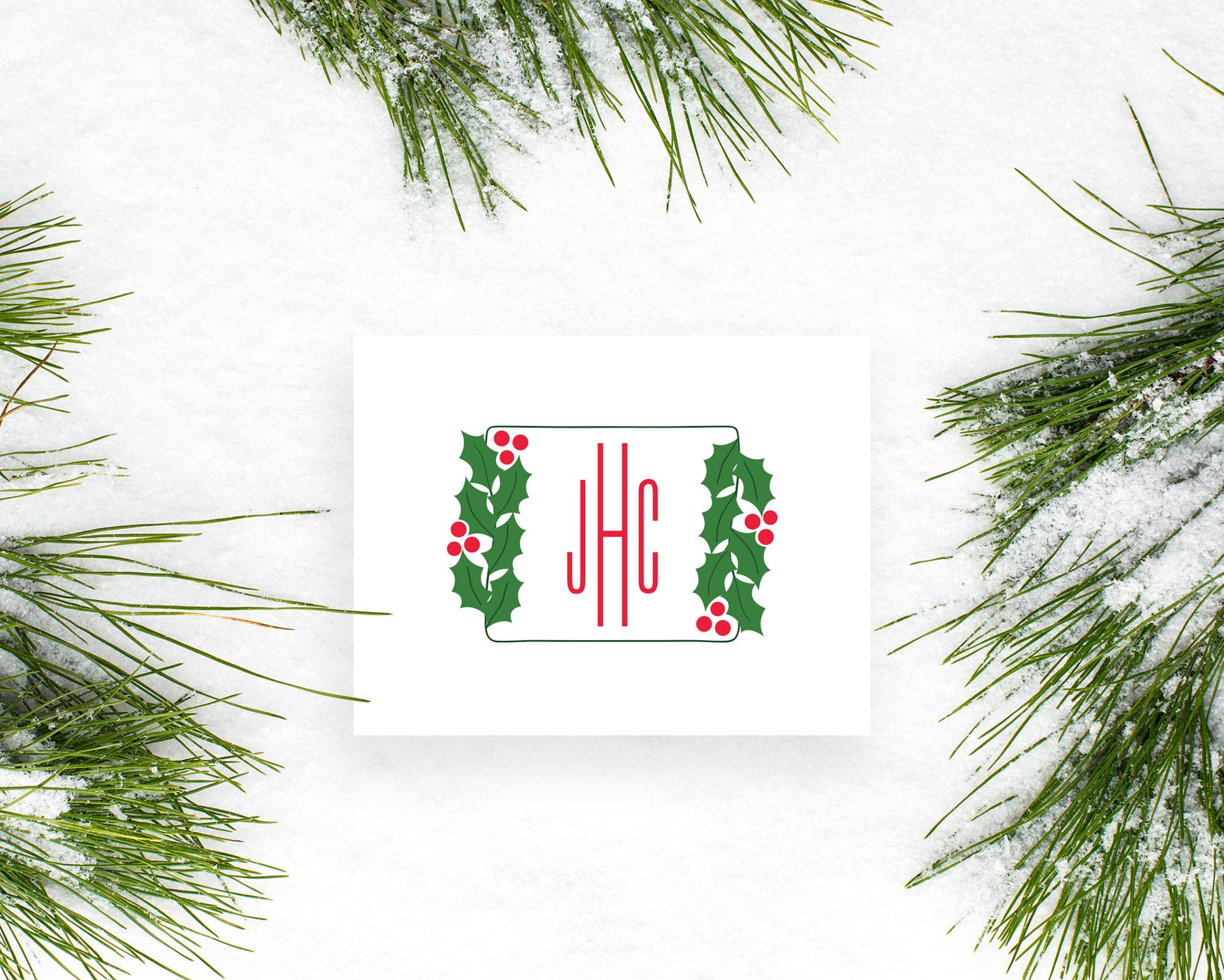 Square Holly Branch Holiday Monogram Folded Stationery