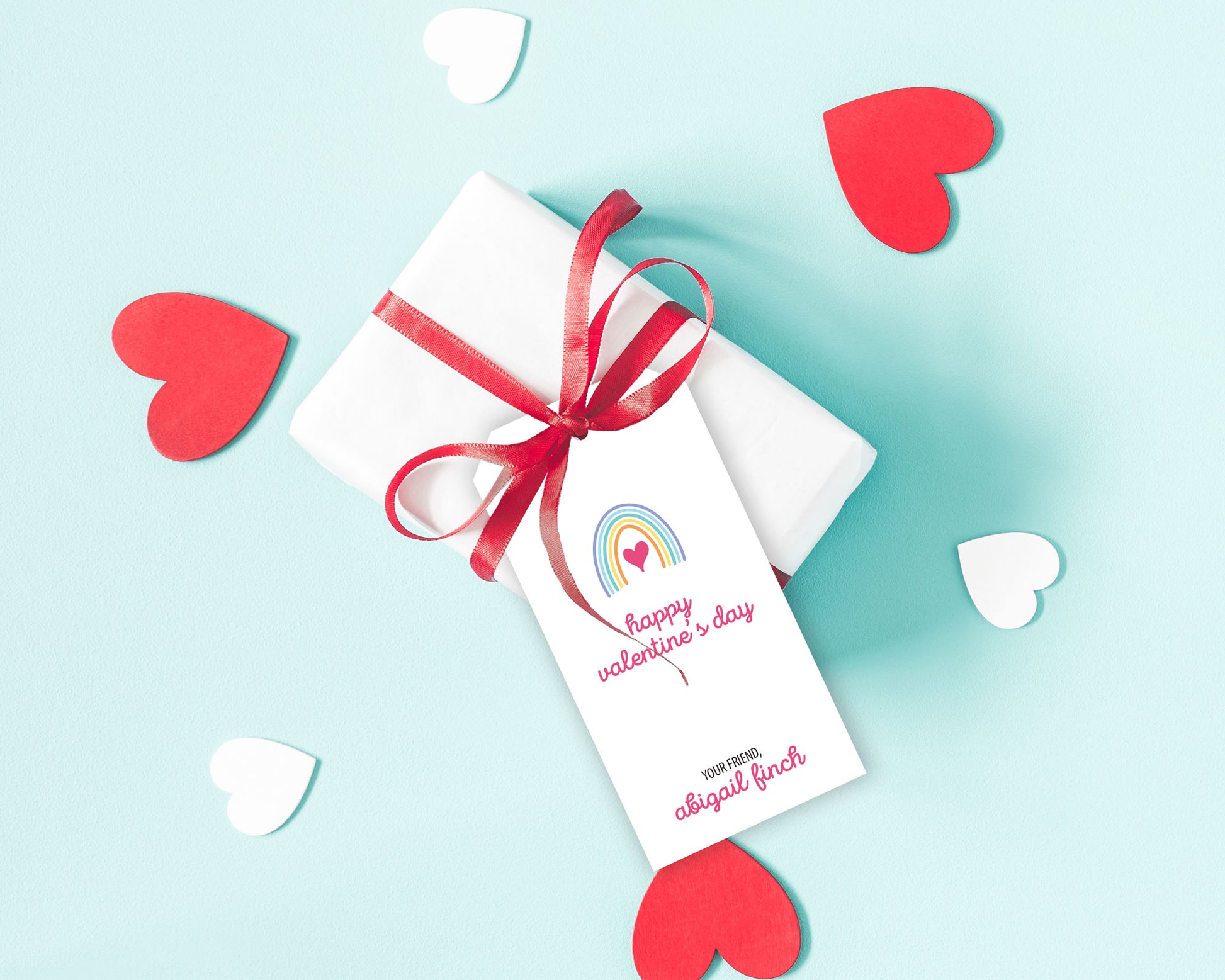 Whimsical Rainbow Personalized Valentine's Day Gift Tags